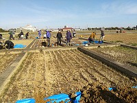 研究室に配属された3年生が、実験実習で供試する土壌を附属農場で採取しました。